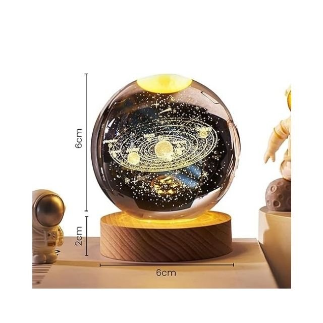 One94Store 3D Solar Planet Crystal Ball LED Night Lamp, Creative Engraved Night Light Wooden Base