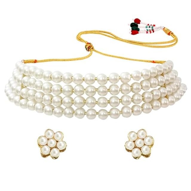 Peora Crystal Faux Pearl Kundan Necklace & Jewellery Set