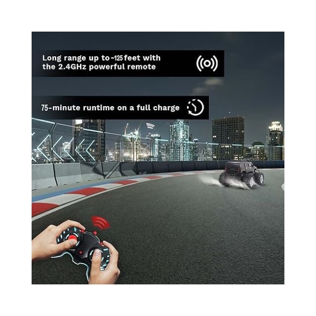 Long Range: 2.4GHz remote car with a range of over 125 Feet. Enjoy smooth, interference-free control. Perfect for indoor and outdoor play