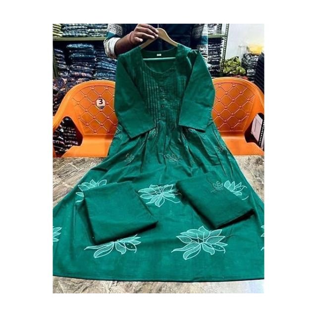 GoSriKi Women’s Cotton Blend Embroidered Kurta Set with Pant & Dupatta